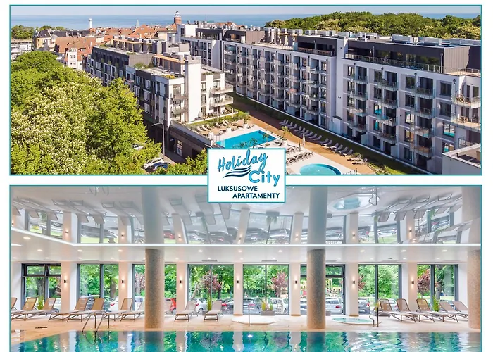 Apartament Tukan B101 Nadmorskie Tarasy - Holiday City Kołobrzeg, som ligger i Kołobrzeg cirka 25 minuters promenad från Polska armémuseet, erbjuder spafaciliteter som ett turkiskt ångbad, bubbelpool och hydromassagebadkar. Den här strandnära lägenheten har en terrass och en pool för gästernas ultimata avkoppling.